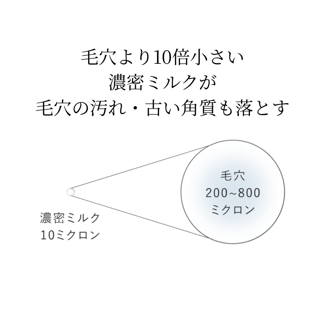 *2 毛穴の平均サイズ3001mに対してミルクのオイル粒子径101m以下